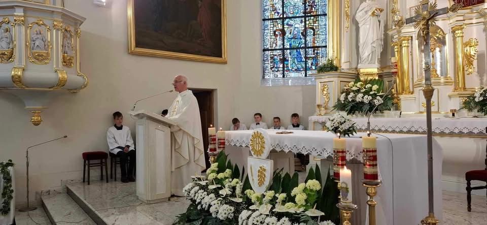 Coroczna Uroczystość Ciała i Krwi Pańskiej to nasze świadectwo wiary i odwagi w jej wyznawania. Po Mszy św. o godz. 10:00 razem z parafią św. Mikołaja wyruszyliśmy w procesji ulicami naszego miasta, aby zamanifestować naszą wiarę w obecność Jezusa w konsekrowanych postaciach. To dziś bowiem cały Kościół żyje słowami Zbawiciela: „Ciało moje jest prawdziwym pokarmem a Krew moja jest prawdziwym napojem. Kto spożywa moje Ciało i pije moją Krew ma życie wieczne, a ja go wskrzeszę w dniu ostatecznym”.
